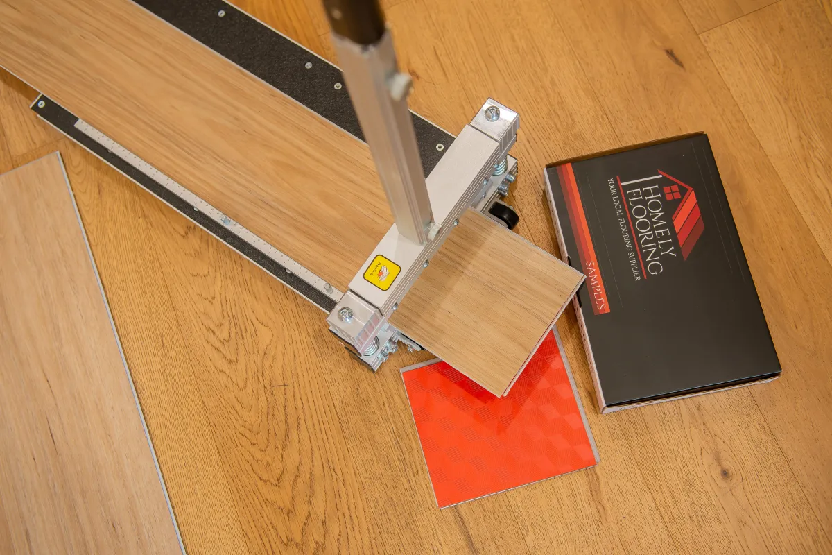 The cutter is designed for hybrid, engineered timber, laminate, vinyl flooring, cement board, wood moldings, rubber, foam, PVC, and more.